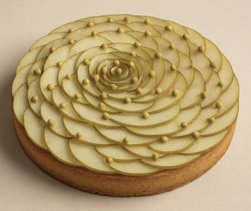 La Pyrus, création raffinée signée Philippe Lartigue - chef et membre fondateur de la confrérie - marie la générosité et la finesse des saveurs automnales. Sur sa pâte dorée, une crème diplomate à la poire accueille des poires confites et un effeuillé de Durondeau fondant à souhait.